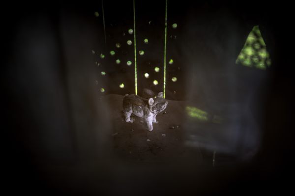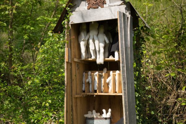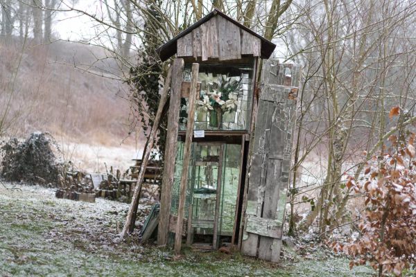 "Ik houd van de vorm. Compact, subwereld, veilig, thuis, eigen wereld. De verrassing als je een huisje opent en de binnenwereld ziet, zoals je de eerste keer een ruimte binnengaat, verrassend, nieuw. In elk huisje speelt zich een eigen verhaal, een eigen leven af..."